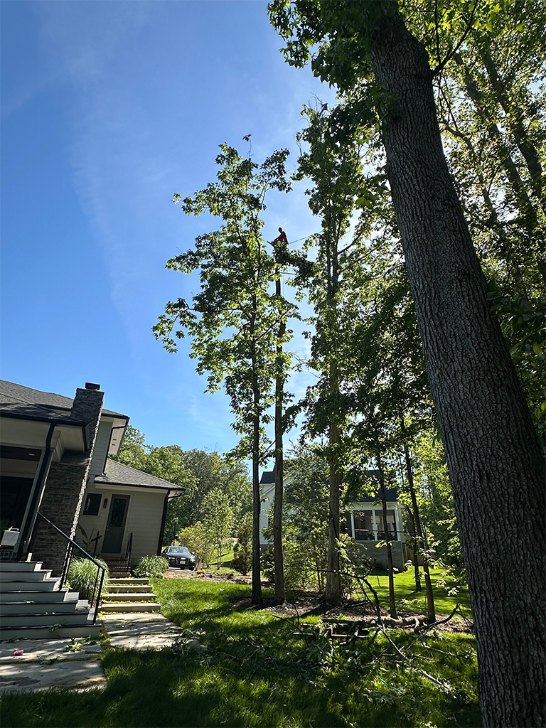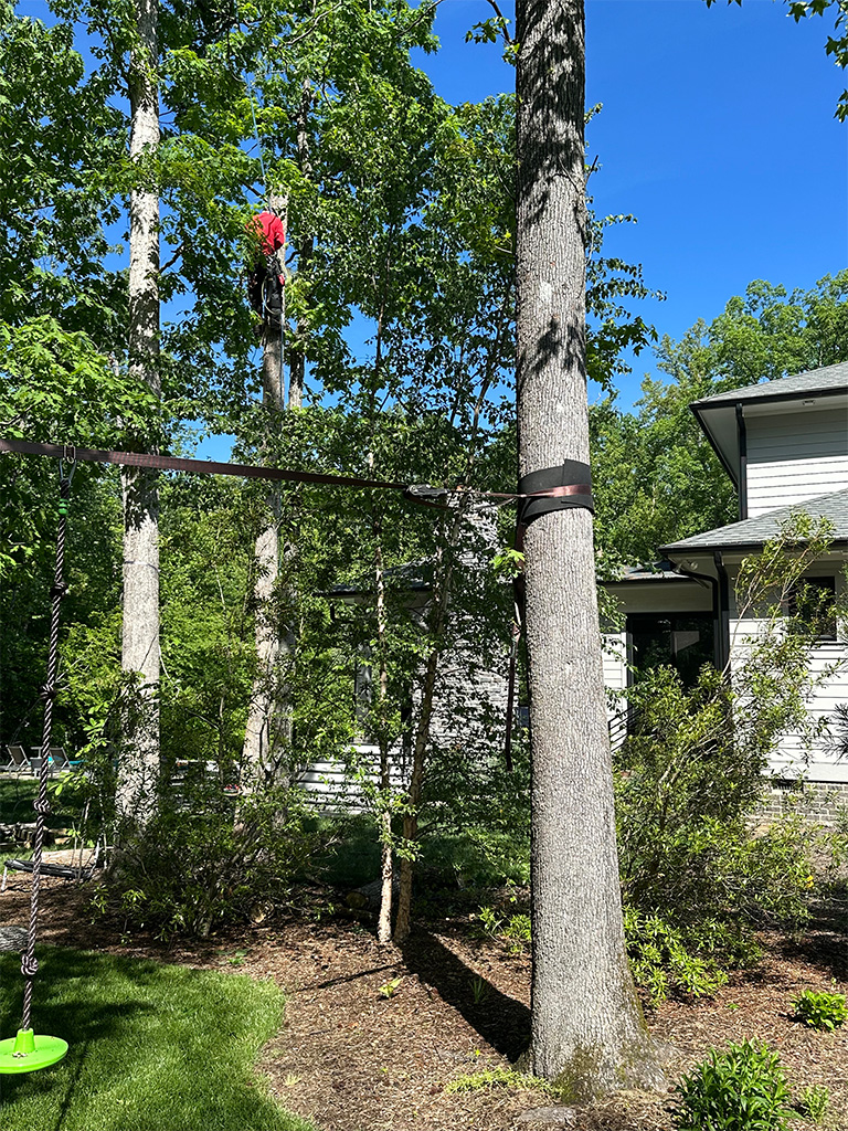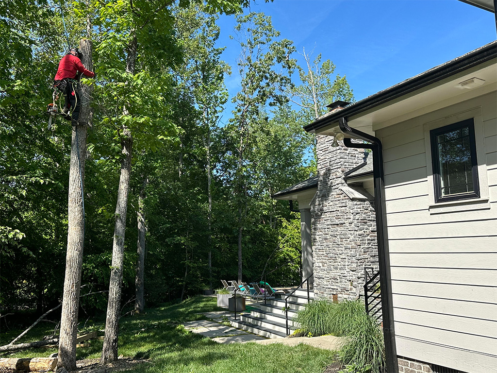 Elevating rows of trees behind the townhomes to create a safer environment for residents and enhance the overall aesthetics of the community, while also removing trees identified as potentially hazardous